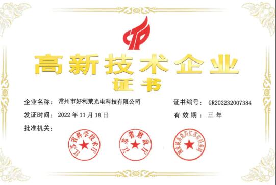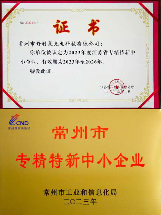 HLL získala vyznamenání z uznání jako high-tech podnik v provincii Jiangsu, jakož i specializovaný, rafinovaný a inovativní malý a střední podnik (SME) v provincii Jiangsu/Changzhou.